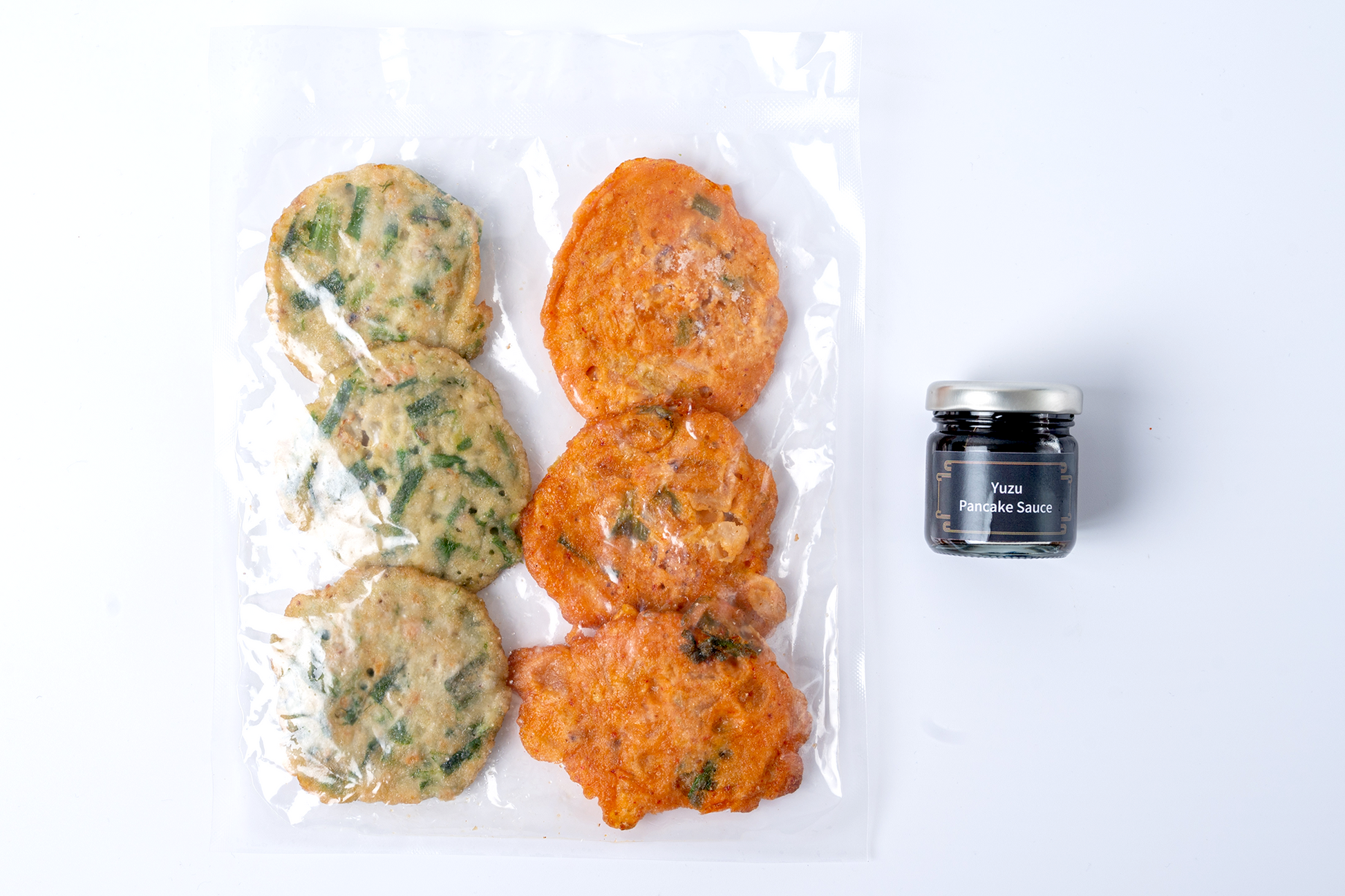 Ingredient: Kimchi Pancakes 50% (Kimchi (Cabbage, Red Pepper Powder, Garlic, Spring Onion, Salt, Salted Shrimp, Anchovy Extract (Anchovy, Salt),Radish, Sugar, Ginger), Wheat Flour, Squid (Todarodes Pacificus), Pan Cake Mix Powder(Wheat Flour, Baking Powder(Corn Starch)), Soybean),Salt, Sugar, Baking Powder(Coen Starch)), Soybean Oil, Spring Onion, Flavor Enhancer (E621), Sugar, Seasoning (Salt, Clam, Glucose, Garlic, Shrimp Powder(Shrimp),Pepper Powder, Squid, Anchovy Powder, Bonito Powder, Yeast Powder, Corn Starch, Sugar, Flavor Enhancer(E621),Crab Extract, Soybean, Shrimp Extract, Garlic, Radish, Palm Oil)), Seafood Pancakes 50% (Pan Cake Mix Powder (Wheat Flour, Seasoning (Salt, Wheat Flour, Soybean), Salt, Sugar, Baking Powder(Corn Starch)), Wheat Flour, Spring Onion, Leek, Onion, Carrot, Soybean Oil, Pepper, Shrimp, Shrimp Extract (Shrimp, Soybean, Salt, Yeast, Palm Oil, Glucose, Sugar, Flavor Enhancer(E621), Onion, Corn Starch, Caramel Color, Sesame Oil, Garlic, Black Pepper Powder), Salt, Flavor Enhancer (E621),Seasoning (Salt, Clam, Glucose, Garlic, Shrimp Powder (Shrimp), Pepper Powder, Squid (Todarodes Pacificus), Anchovy Powder, Bonito Powder, Yeast Powder, Corn Starch, Sugar, Flavor Enhancer (E621), Crab Extract, Soybean, Shrimp Extract, Garlic, Radish, Palm Oil))